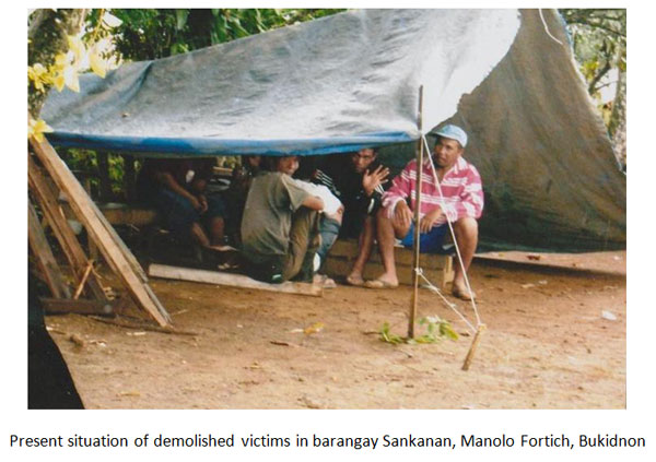 Dear friends, The Asian Human Rights Commission (AHRC) has received information from Task Force Detainees of the Philippines-Mindanao (TFDP) that the houses and properties, including the farms and trees of 28 families (137 villagers) were illegally demolished from the land they had lived on for more than 50 years in Bukidnon Province, Mindanao. The sheriff […]