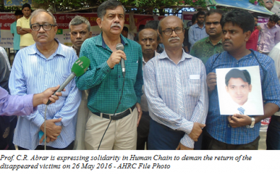 Members of families of 19 disappeared victims once again took to the street, yesterday, 26 May 2016. They formed a “human chain” in front of the National Press Club in Dhaka to demand the return o...