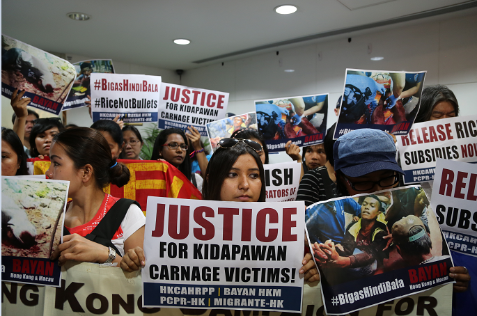 This week Just Asia covers the deadly dispersal of protesting farmers in Kidapawan city, Philippines. Suffering from hunger and unable to plant their crops due to the El Nino drought, the farmers organized a protest blockading the main highway connecting North Cotabato and Davao City on March 29. On April 1, police and military personnel opened fire on the unarmed farmers, killing three and injuring 116. To express support and condemn the blatant violation of the farmers’ rights, 17 organizations joined a protest at the Philippines Consulate, Hong Kong. Just Asia covered the protest.
