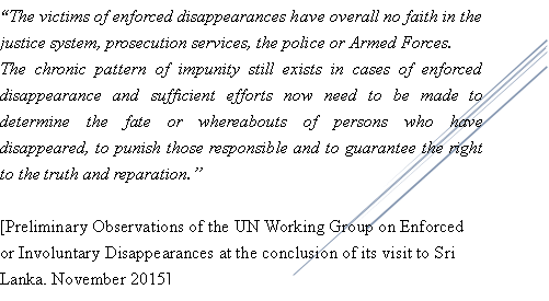 It is from these considerations that one could expose the limitations of trying to look into enforced disappearances only from a technical perspective which is a perspective from which even international agencies have looked into the phenomenon of disappearances in Sri Lanka. Kind of recommendations that merely insist on the state following its laws and improving its technical capacities to investigate and prosecute enforced disappearances conveniently overlooks the fundamental shift in principles that Sri Lankan state opted to act upon on occasions when it authorised enforced disappearances.