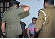 The cartoonist created this cartoon in reaction to a photograph which also appeared in the Daily Mirror in which a police officer saluted the controversial UPFA parliamentarian, Duminda Silva.