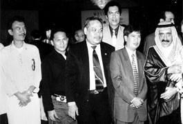 Manila Bulletin (MB) reporter Bong M. Reblando (2nd from left) smiles in this undated file photo taken during a past Saudi Arabian national day celebration in Makati City/ from the Manila Bulletin
