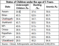 In UP, 62%; in Bihar, 52%; in MP, 51.5% and in Jharkhand 50.5% of children in the age group 5-59 months are in the grip of stunting malnutrition.