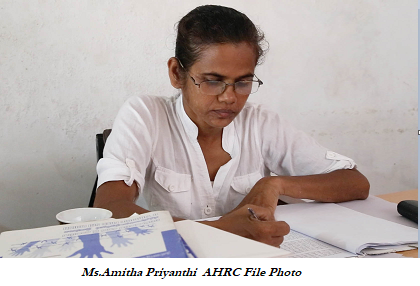 This involvement in the fight against human rights abuses began when Amitha Priyanthi’s brother, a soldier, was arrested by the Payagala Police. Held in police custody for about eight days, he was severely tortured by the police. He was then brought before a medical officer who failed to a perform proper examination on the patient. As a result, he was remanded and died in remand-custody on the very first day he was admitted to prison.