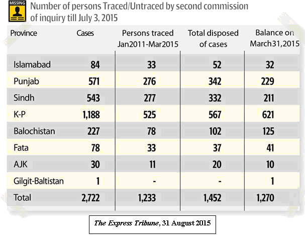 This year’s official figure of the “untraced”, as it stands on July 2015, is 1,270. This figure is but the tip of the vast iceberg in the deep dark waters that is Pakistan today.