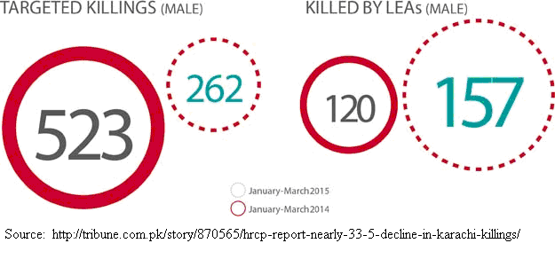 From the stats available it appears that though target killing has reduced by 49% the number of death in encounter have increased by 30percents. The Karachi operation began without any coherent strategy chalked out to strengthen the civil system of policing as paramilitary forces were literally given control of the whole city resulting in human right violation and rise in extra judicial killings. The term of rangers was initially said to be one year however I has now been extended indefinitely.