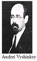 In Vyshinsky’s trials the outcome was predetermined. The trials of the 1930s were known worldwide as show trials. Those actually accused were not really the targets of the proceedings. The accused were mere exhibits to be advertised before the rest of Russia in order to pass a message to the people about the fundamental beliefs that Stalin wanted to impose on society. Vyshinskys biographer Arkady Vaksberg writes that the purpose of the trial had not been to disgrace or, indeed, to annihilate some of the accused but to create a precedent and pave the way for a psychological attack on the population.