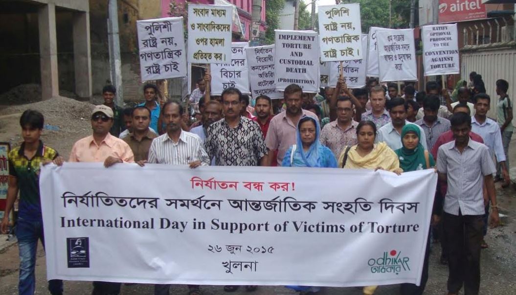Torture victims took to the streets in many district headquarters of across Bangladesh on 26 June. They demanded justice for the pain inflicted by law-enforcement agency personnel. Lawyers, journalists, human rights defenders, trade union activists, teachers, and cultural activists participated in the protests and human chains in the country.