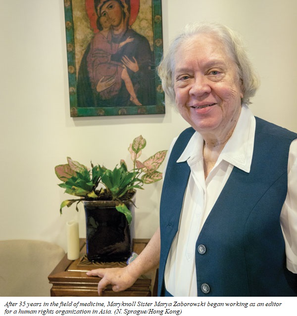 Sister Zaborowski, 86, has served as a missioner in Hong Kong since 1965, ministering at Our Lady of Maryknoll Hospital as a nurse and an administrator, while teaching nursing students.