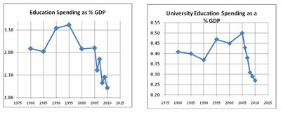 FUTA demands an increase in Government spending on state universities and education in general. FUTA is concerned that the government, by gradually decreasing spending on education, is slowly destroying education and free education. The data we present below clearly show a dramatic decline in funding for universities since 2005 (in spite of an over 20% increase in student intake).