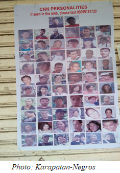 On April 16, 2018, posters bearing the pictures of leaders of mass organizations was reportedly being circulated and posted in public places in Moises Padilla, Negros Occidental. The said material claimed that the individuals were “CNN personalities”, insinuating their alleged link to the Communist Party of the Philippines – New People’s Army – National Democratic Front. A number is also included in the poster — a hotline that directs the caller to the Moises Padilla police station.