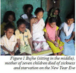In fact, Bhuje died suffering from starvation and sickness while the administration authority stood by and neglected its duty. As a result, deprivation of the right to food in the family led to Bhuje's death as well as the child labour of her children. Immediately after Bhuje got sick her two elder children started working under the National Rural Employment Guarantee Act (NREGA) and worked as agricultural labourers in order to provide for their siblings - Uma (aged 16), Pusa (aged 10), Munki (aged 8), Akshaya (aged 7) and Janmejaya (aged 7) who are starving. All children, but for the two youngest, have stopped studying in order to ensure food security for themselves. There is increasing concern that these seven children may die of starvation.