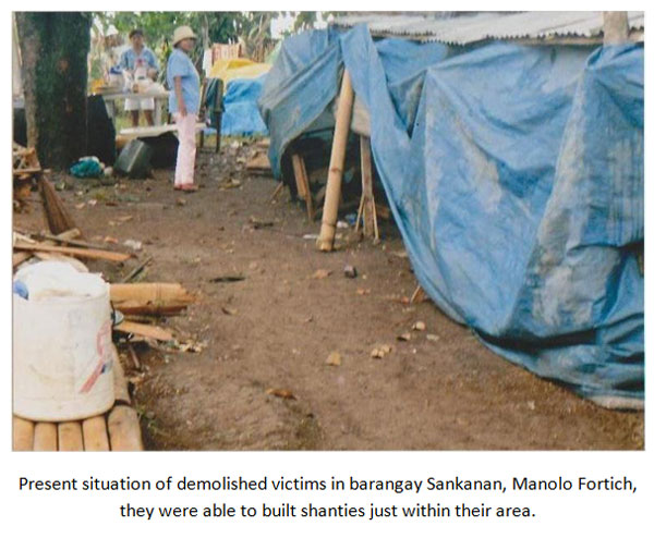 By March 22, 2010, all victims were reportedly remaining in the area and had built shanties within their demolished properties but had not received any relief.