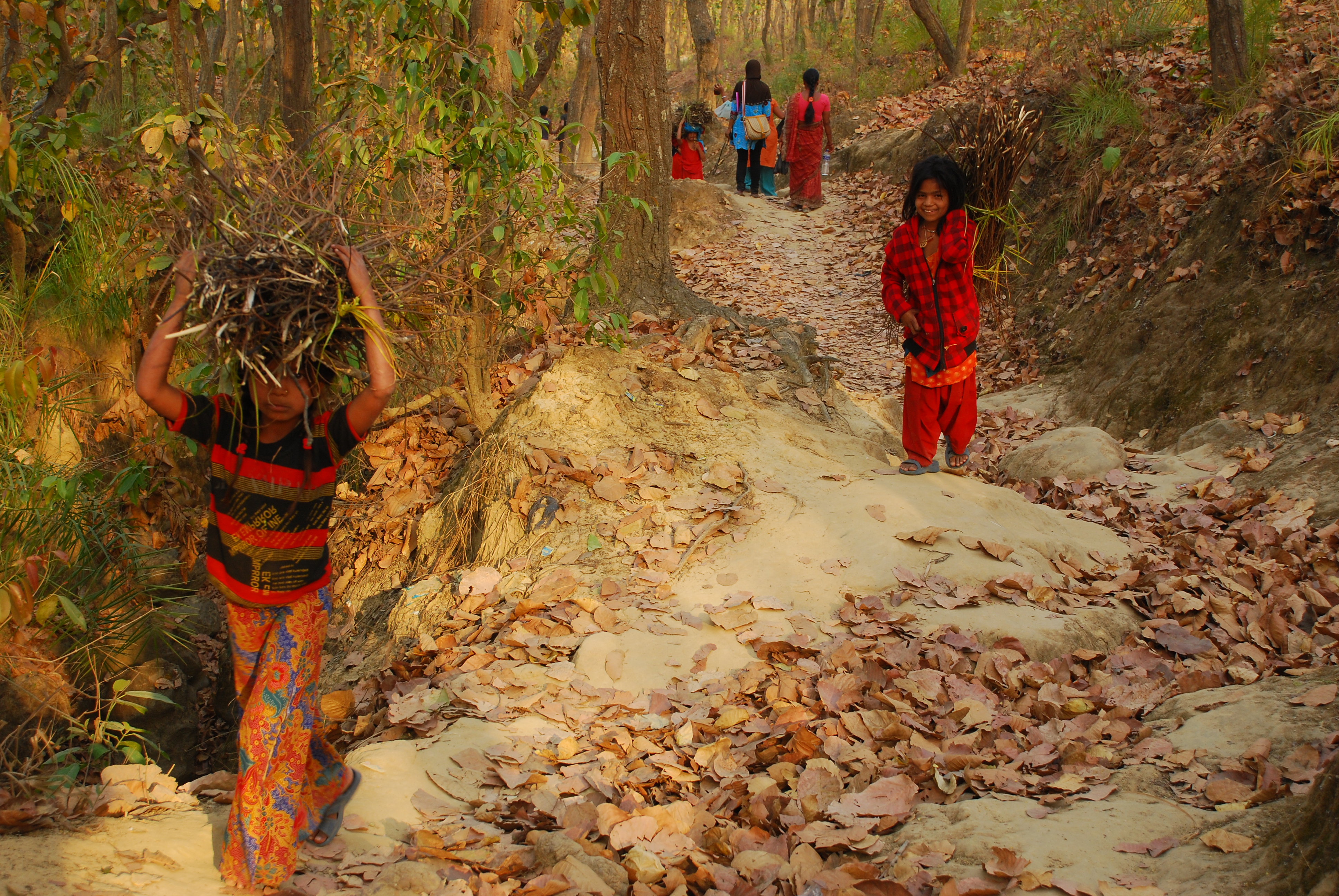 The community falls far below the international poverty line. During the rainy season, it is more difficult to extract sand and stones from the often-flooded river. The Gandharvas have to carry them in a bamboo basket (doko) weighing 30 kilograms on their heads, and walk along the steep and slippery path to the main road to load them in the truck. They are paid a mere 60 rupees (USD 0.76) for two trips.