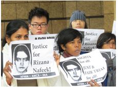 AHRC-PRL-001-2013-1.jpg(Hong Kong, January 18, 2013) Dozens of Hong Kong-based migrant workers, including Sri Lankans; migrant and human rights groups, protested today the execution of Rizana Nafeek, a Sri Lankan maid, in Saudi Arabia.