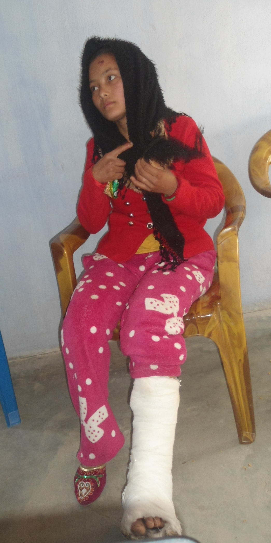 I have received information that Sangita was bringing water from a well near her house at around 5 p.m. When her mother saw her, she started shouting abuse at her, using caste-based derogatory terms. Sangita’s mother proceeded to throw Sangita’s bucket of water and attacked Sangita. Sangita’s father, sister, and another relative joined in and attacked Sangita, beating her with a wooden sticks and firewood. Due to the severe beating, Sangita fell unconscious. However, the family did not relent. They sprinkled water, woke her up, and started hitting her again until she fell unconscious for a second time. Sangita was beaten for around 30 minutes. She has suffered numerous bruises to her forehead, her body, and her legs, and is unable to walk without support. Her left ankle has been broken due to this prolonger assault by her family.