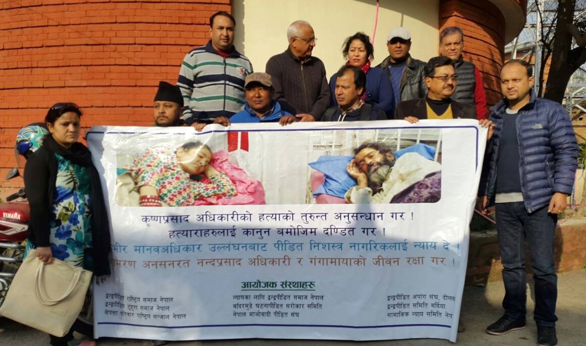 They were sitting peacefully at Khulla Manch in Ratna Park, with a demand for justice to Ganga Maya Adhikari and conflict victims, as well as for implementation of the Supreme Court Order in the Balkrishna Dhungel case. They are presently detained at the Metropolitan Police Circle, Singha Durbar.