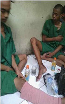 According to LBH Padang, an unidentified officer took Oki Saputra (19) to Padang Selatan Sub-District Police Station at 1.30 pm of 6 February, 2014. Oki was told that the police would like to question him on the motorcycle theft complaint lodged by his family two days earlier. Yet, upon his arrival at the police station, Oki was interrogated on a bag-snatch theft case took place in January 2014. Oki was electrocuted and beaten during the interrogation, but he insisted that he had not committed the crime. (Photo: Andi (left) and Oki (right) were shot by the police despite not posing threat or attempting to escape. Courtesy of LBH Padang)