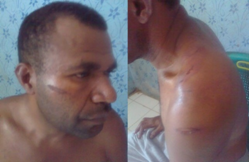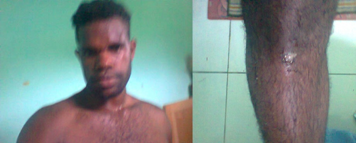 An hour after they arrived at Depapre Sub-District Police Station, Daniel, Arsel and Eneko were taken to Jayapura District Police Station. The police started questioning three of them on the whereabouts of Terianus Satto and Sebby Sambom, two pro-independence activists whom Daniel, Arsel and Eneko do not have any relationship with. Eneko Pahabol told the local activists that he was repeatedly kicked in his face by officers who were wearing police boots. The officers kicked him both in his left and right knees which caused them to bleed. Eneko and his friends were also beaten with a rattan stick as well as being electrocuted on their legs. The police officers pressed the barrels of their guns to their heads, forced them into their mouths and ears. Arsel Kobak told the AHRC that he was asked to take his clothes off and kicked on his head, face and back by the police officers. As a result, his mouth and nose were bleeding, his forehead was wounded and he is now experiencing hearing difficulties.