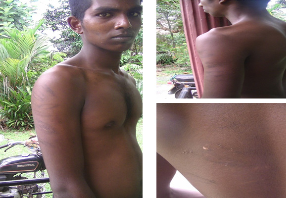 On 9 March 2015, Jeevandarage Ashan Tharanga, a 17 year old young man of No: 62, Balummahara, Dekatana in the Gampaha District, was illegally arrested and severely beaten by police officers attached to Meegahawatte Police Station. He was detained in the station for 3 days and produced before the Magistrate of Kadawatha on fabricated charges on 01 April. The victim suffered serious injuries due to the beatings. Throughout the assault, Sub-Inspector (SI) Vimalaratne insisted that he confess to stealing a three wheeler vehicle. The boy repeatedly refused to confess, surviving the extreme beatings for the entire period of detention. On two occasions, the Officer-in-Charge (OIC) of the police station interrupted the officers who were torturing the young man. He clearly told them that this underage young man had no connection to the crime and ordered his release. But it was not accepted by the SI Vimalaratne who produced him before the Kadawatha Magistratre on fabricated charges.