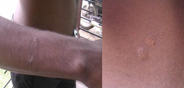 Next, SI Vimalaratne used dried ox pines to beat Ashan on the chest, shoulders, back, buttocks, thighs, legs and hands.. There were uncountable numbers of scars on his body. His skin was split open and started to bleed. There was also bleeding under the skin. Several parts of his body became swollen with water blisters and contusions. These injuries are still visible on his body.