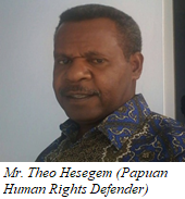 Theo Hesegem is a prominent human rights defender from Wamena, Papua. He is the coordinator of a local human rights organization in Wamena, and a consistent advocate against various human rights cases in Papua. Previously, the AHRC had issued an urgent appeal related to military intimidation against Theo: Papuan human rights defender insulted and intimidated by military command