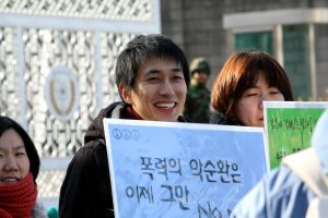 For the past several decades, conscientious objectors against military service have been going to prison. Yet it was only after 2000 that the issue became known to the public. That the cumulative number of conscientious objectors who served prison sentences exceeded ten thousand at the time profoundly shocked Korean society. Long considered an issue for Jehovah’s Witnesses only, conscientious objection became a social ‘movement’ with the public declaration of the first non-Jehovah’s Witness conscientious objector, the pacifist and Buddhist Oh Tae-yang in December 2001. In early 2002, “Korea Solidarity for Conscientious Objection” (KSCO) was formed by 36 civil and social organizations. They began to raise public awareness about conscientious objection through various activities such as discussion forums, lectures, public hearings, campaigns, and written articles.