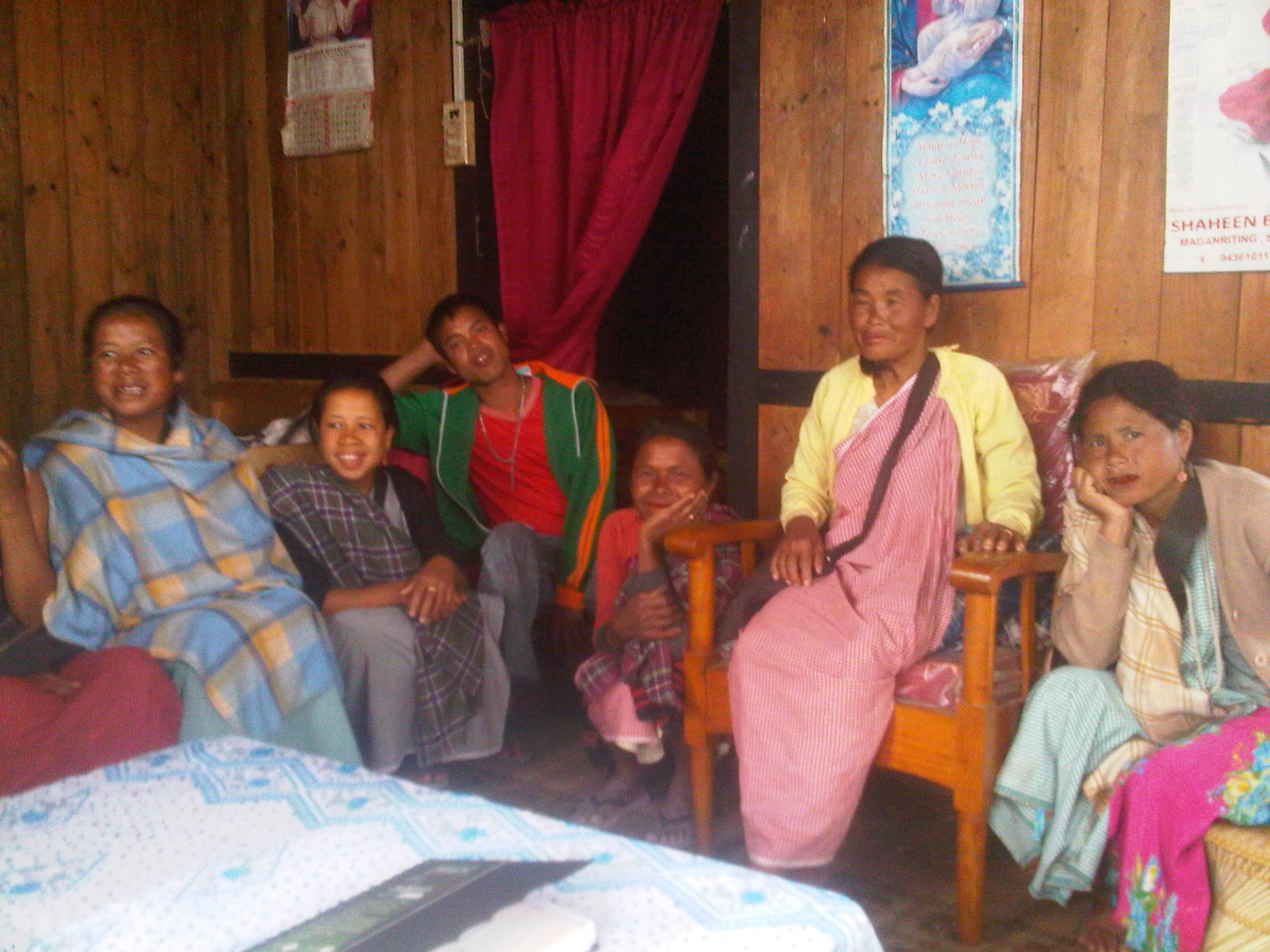 The fair price shop owner and PDS distributor, Mr. Basil Kharthangmaw, informed Ortila that his action is a result of a verbal dictum from Mr. Kwit Kyrsien, village Sordar (Headman), and Mr. Faithstar Nongtri, Secretary of the ‘Dorbar’ of Kynroh Nonglyer village. The Dorbar is a traditional grassroot organization of the Khasi tribe, made up of select male members. Such bodies have immense influence over local community life. Women are excluded from membership, as well as the meetings of many Dorbars. The Khasi Dorbar draws its legitimacy from the Sixth Schedule [explained later] status of the district. (In the picture: women of Kynroh Nonglyer village. The woman in yellow sweater: Ms. Ortila Nongrum. Picture: Agnes Kharshiing)