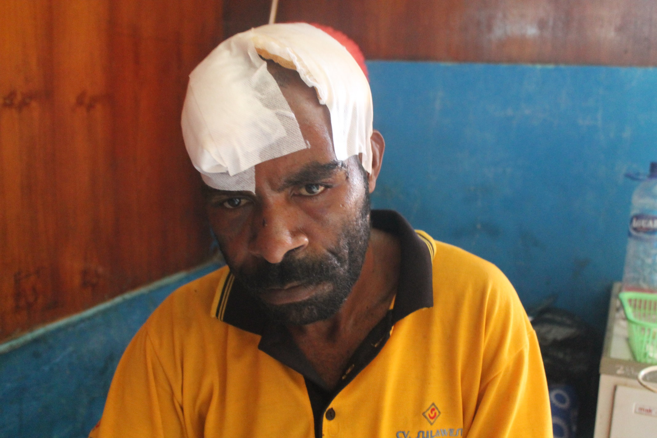 (Photo: Paulus Kobogau was slashed about the head by police officers in Nabire for attempting to stop the police brutality. Courtesy of KINGMI activist)