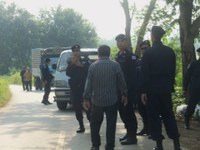 On the morning of 21 April 2014, a convoy of trailer trucks accompanied by a number of smaller vehicles with concealed licence plates drove through the villages to the mine. Later that day, Lieutenant General Poramet Promnak entered into the house of Mr. Surapan Rujchiawat, the leader of the Khon Rak Ban Koed Group. Lieutenant General Poramet was accompanied by 15 men wearing black. Four of these men claimed to be soldiers. Lieutenant General Poramet demanded that Mr. Rujchiawat lift the barricade to allow through trucks transporting copper ore from the mine. The information from the court hearing indicates that the amount of copper ore in concern was worth 300 million Thai Baht. The villagers set up a team to check that the trucks did not contain amounts in excess of that allowed by the law and also to prevent people from coming to threaten the leaders.