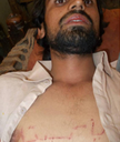 On one occasion, as he was thirsty he asked for water and was given acid mixed with water. His tongue was severely injured and began to bleed. The abductors continuously cursed the Sindhi speaking people and said that they are enemies of Pakistan. One night the Punjabi speaking abductors engraved the word ‘Pakistan’ on his chest. They used an electric drill into which they had inserted a knife blade. They urinated on his head on several occasions. They threw him on the road side after deciding that they had no further use for him. A farmer took him to hospital on his motor bike.