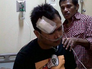 According to the information we have received, Tama Satrya Langkun and a friend were forced from the road by a car while they were riding a motorcycle in Kalibata, South Jakarta at about 4am on 8 July 2010. In a press conference the ICW reported that the car feigned ramming the bike from behind, causing the men to crash. Two men on another motorcycle then arrived on the scene, took off Tama’s helmet and slashed him a number of times with a machete.