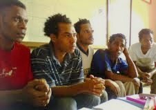 The police then questioned seven detainees without legal counsel, five of which were students attending the protest march: Jhon Wilson Wader, Penehas Serongon, Yance Sekenyap, Alex Duwiri and Jhon Raweyai, who conducted the peaceful march joining the anniversary rally. Police arrested two more political activists from the anniversary celebration, Melki Bleskadit and Daniel Yenu. The police charged them with rebellion based on article 106 of the Indonesian Criminal Code concerning an attempt undertaken with intent to bring the territory of the state wholly or partially under foreign domination or to separate part thereof, and article 107 of the Criminal Code concerning an attempt undertaken with intent to cause a revolution. They were also charged with incitement to disobedience against the public authority as mentioned in article 160 jo, (in conjunction with) Article 55 and 56 of the Criminal Code. (photo: the 5 student protesters charged with rebellion in court, source: LP3BH)