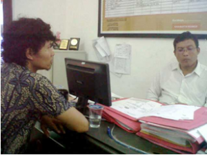 On 7 May 2011, a number of journalists were covering the parade of the anniversary of the Falun Gong, a spiritual group, in Surabaya Indonesia. The parade started at 12.00 PM in Surabaya, East Java. At 2.00 PM, the Surabaya District Police officers disbanded the parade activities by grabbing the banner of the Falun Gong members. After Oscar Eko Nugroho, a journalist from the New Tang Dynasty newspaper complained to the police about the unnecessary force used in disbanding the crowd, he was arrested by the Surabaya district police and detained in a police truck. The local police considered his complaint as a humiliation. Inside the truck, police commissioner Subagyo, vice head of intelligence and the security unit of the Surabaya district police beat Mr. Nugroho. The violence resulted in bruises on Mr. Nugroho’s head and body. (photo: Sefta’s verbal investigation at provost police mechanism, source: Surabaya Press Legal Aid Institute)
