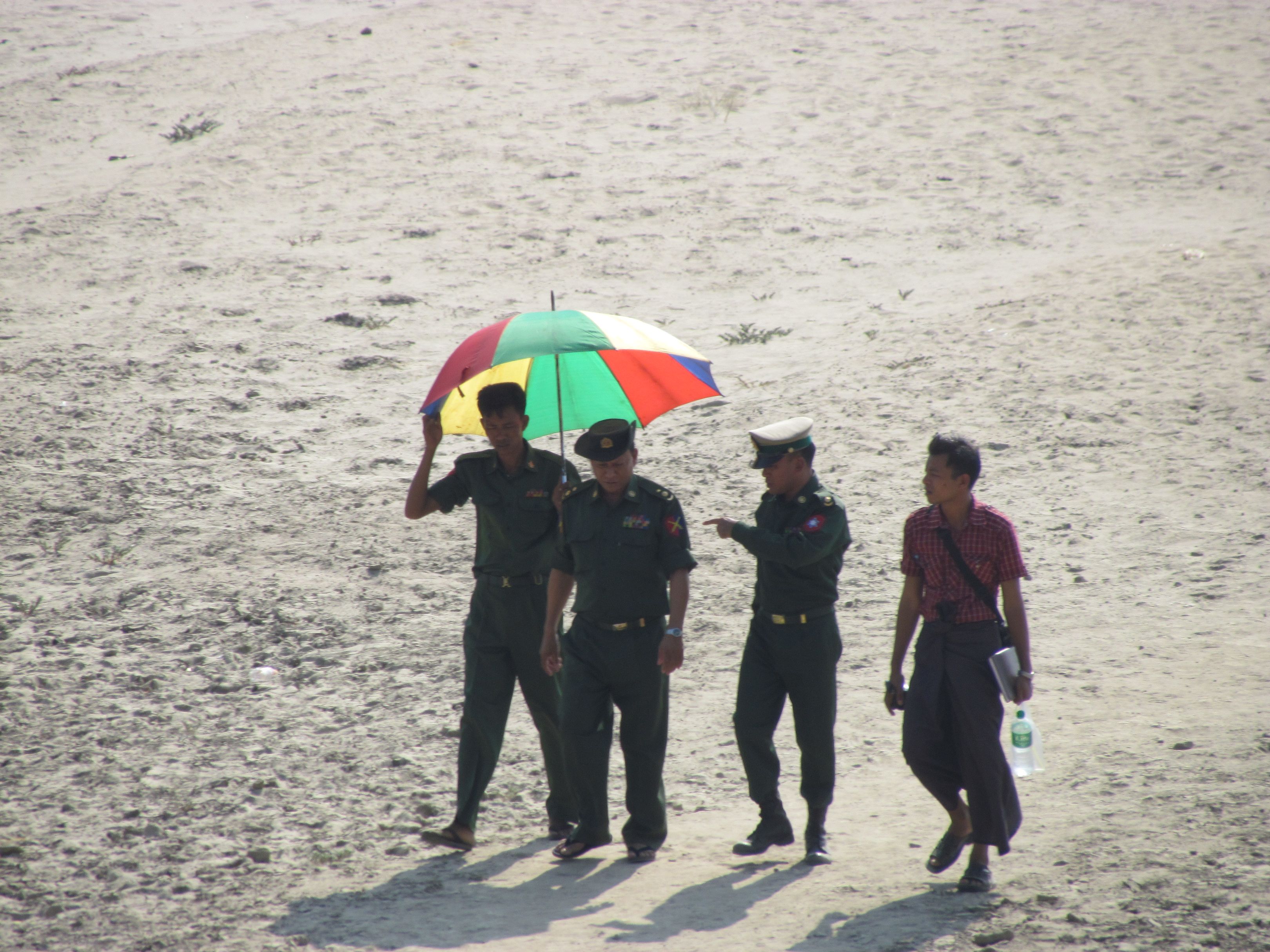 According to the information that I have received, in the evening time of 23 April 2013, the two victims were sitting on the bank of the Ayeyarwaddy River under the viewpoint where families and couples come of an evening time to relax and play, when three men came from under the Nawaday Bridge and crossing a sandbank came up to the couple. The two victims could identify the three clearly. One asked Zaw Min Oo for a light, but he said he didn’t have one and they went on.