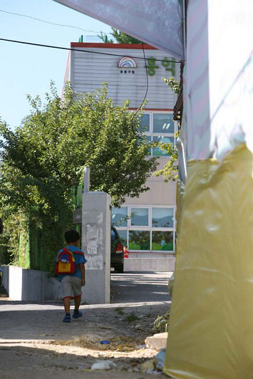 Hong-Ik nursery school is in Sungdong-Gu, Seoul, in an area targeted for re-development, as of 25 March 2009 (details in the letter below). According to a report by the Ministry of Labour, 131 buildings in the area were slated for the removal of asbestos, but approximately 120 children under the age of five were allowed to go to school every day in that area while the demolition was taking place.