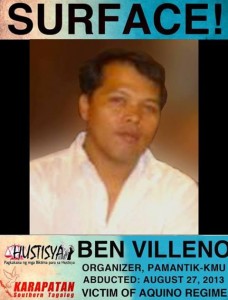 Villeno’s colleague, Wenecito Urgel, Secretary General of Pagkakaisa ng Manggagawa sa Timog Katagalugan – Kilusang Mayo Uno (PAMANTIK-KMU), is of the opinion that the victim is being held by the security forces.
