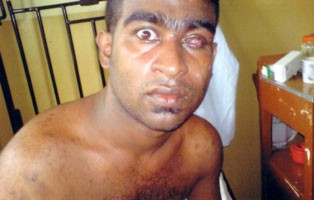 At about 7pm, Aravindra and Thusara Chaminda were put in a police vehicle and Aravindra shouted to his father, “Please don’t go home they may kill us.” At this the father replied that he would not leave but would follow them. The police car took the two people to the Matara Hospital. Aravindra was hospitalised at Ward No. 24 on March 1. He was treated there up to the 5th March. During this time his father talked to the specialist doctor who was treating his son. The doctor stated that due to delayed treatment the situation of Aravindra’s eye was serious and that he had lost the sight in that eye completely.