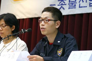 Mr. Lee Gil-jun, 24 years old, held a press conference at 7pm on 27 July 2008 and declared that he objected serving as an auxiliary police – a type of duty of national defense. He received a special holiday for three days due to his duty to suppress people taking part in the candlelit rallies.