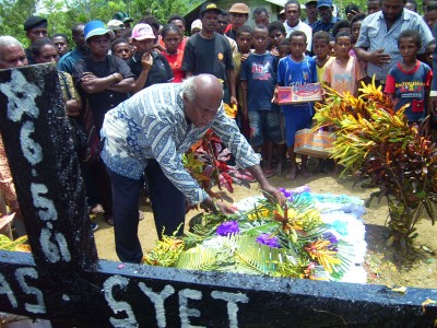 Asian Human Rights Commission (ua@ahrchk.org) On October 16, locals were leaving from Dosai to join the demonstration in Jayapura. Due to security forces blocking the street in Sentani however, the demonstrators could not reach Jayapura, so they decided to go back to their villages. On the way home people began noticing that they had not seen Yosias Syet all day. On the following day, his dead body was found. (Photo: Funeral of Yosias Syet)