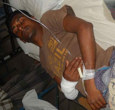 According to the latest information, Bodiar’s right hand’s forearm and left plum have been fractured with several cuts and bruises in his forehead, back and other parts of the body. He has received severe injuries in his head. Abdul’s ribs have been fractured and received injuries in his head and many parts of the body as well. Both of them have swollen marks all over their bodies. At the time of writing this appeal the injured victims were admitted at the Paikgachha hospital after having done radiological examinations regarding the fractures in their respective bodies.