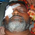 The doctors of the KMCH provided another first aid instead of any specialised treatment to Razzak and referred to the Dhaka Medical College Hospital (DMCH), the largest public hospital of the country, for treatment. The doctors told the relatives that if Razzak’s eyes are not adequately and immediately treated within 24 hours since time of gauging the eyes he (Razzak) will permanently lose his eye sight. His right leg and hand also require immediate proper treatment in order to avoid permanent physical disability. Razzak returned to his sense but could not see anything.