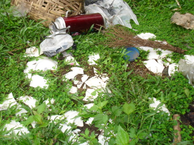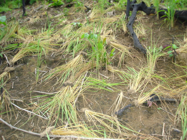 – Photo 10: Destroyed rice barns with empty drum for rice storage