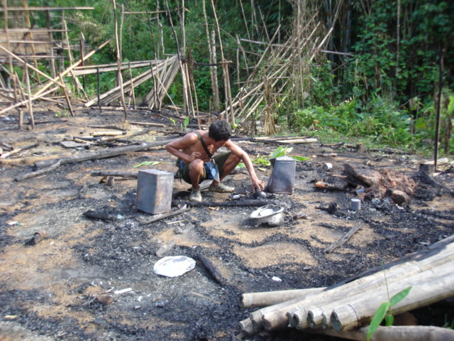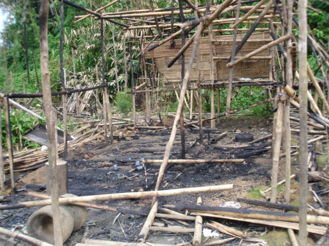 The Asian Human Rights Commission (AHRC) has recently received photos that show damage to houses and crops, and internally displaced persons hiding due to the Burma army’s ongoing attacks in Papun Township, Karen State, Burma. The AHRC previously reported that about 5,000 people fled their homes due to the Burma army’s attacks since 14 November 2004and that 19,425 baskets (about 388,000 kilos) of paddy rice have been burned. (See further: HA-08-2004)