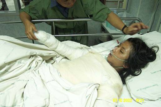 Finally, the Public Prosecutor charged Suchart and his wife with murder, confinement and harbouring an illegal alien under Sections 289 and 310 of the Penal Code of Thailand and Section 64 of the Immigration Act B.E.2522 [1979]. The first hearing of the case was held at Uthaithanee Provincial Court on November 1. Although the initial progress looked good, the court set the next hearing for January 2006. As a new hearing system was enforced a year ago, the court needs time to handle pending cases filed in the old hearing system prior to hearing new cases. However, local human rights groups argue that enforcing the new hearing system is being used as an excuse to drag on trial in some cases, and this case must be heard without further delay due to its brutality and urgency. The accused Thai airforce officer and his wife had already escaped justice for two years, apparently because of the officer’s influence and position of authority.