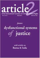 Dysfunctional Systems of Justice Vol. 11 – No. 01 This issue is also available in PDF format. To download the PDF File, click here: http://alrc.asia/article2/wp-content/uploads/2021/03/v11n01.pdf Table of contents An appeal for Burmese lawyers struggling for justice in a highly dysfunctional system Eradicating hunger requires concrete action, not hollow promises! How can lawyers deal with dysfunctional systems of justice? India, a corpse of rights without justice as its soul